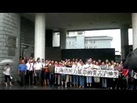 2012年6月26日下午13时30分黄苏沪劳教一案在浦东拘留所开庭。逾百名上海冒着大雨前往维权市民浦东拘留所声援黄苏沪。维权市民高呼“黄苏沪冤枉”,并在拘留所大门前打出“上海访民为狱中的黄苏沪伸冤”的横幅,对当局迫害、打压黄苏沪表示强烈抗议。